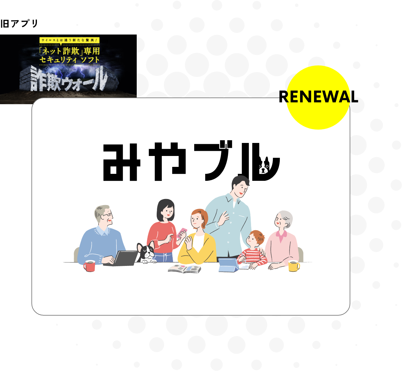 こうした状況を背景にネット詐欺被害ゼロ社会の実現を目指し、より強固に幅広い世代の人々をネット詐欺から守りたいという強い思いから、「詐欺ウォール」は新たなステージへ進むべく製品名称を「みやブル」に変更。ブランドコンセプトを一新しました。